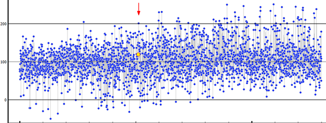 Červená šipka v obrázku ukazuje předpokládaný okamžik zákrytu. Maximální doba trvání na centrální linii byla předpověděna na 0,24 s a očekávaný pokles jasu byl 100 %. Negativní hlášení hovořilo o užití expozice 0,06 s. Minimálně s ohledem na šum, ale také kvůli dlouhému expozičnímu času se jedná o „bezcennou zprávu“. Vyhněte se prosím takovým hlášením – jsou nepoužitelná a zbytečně přidělávají práci revizorům.